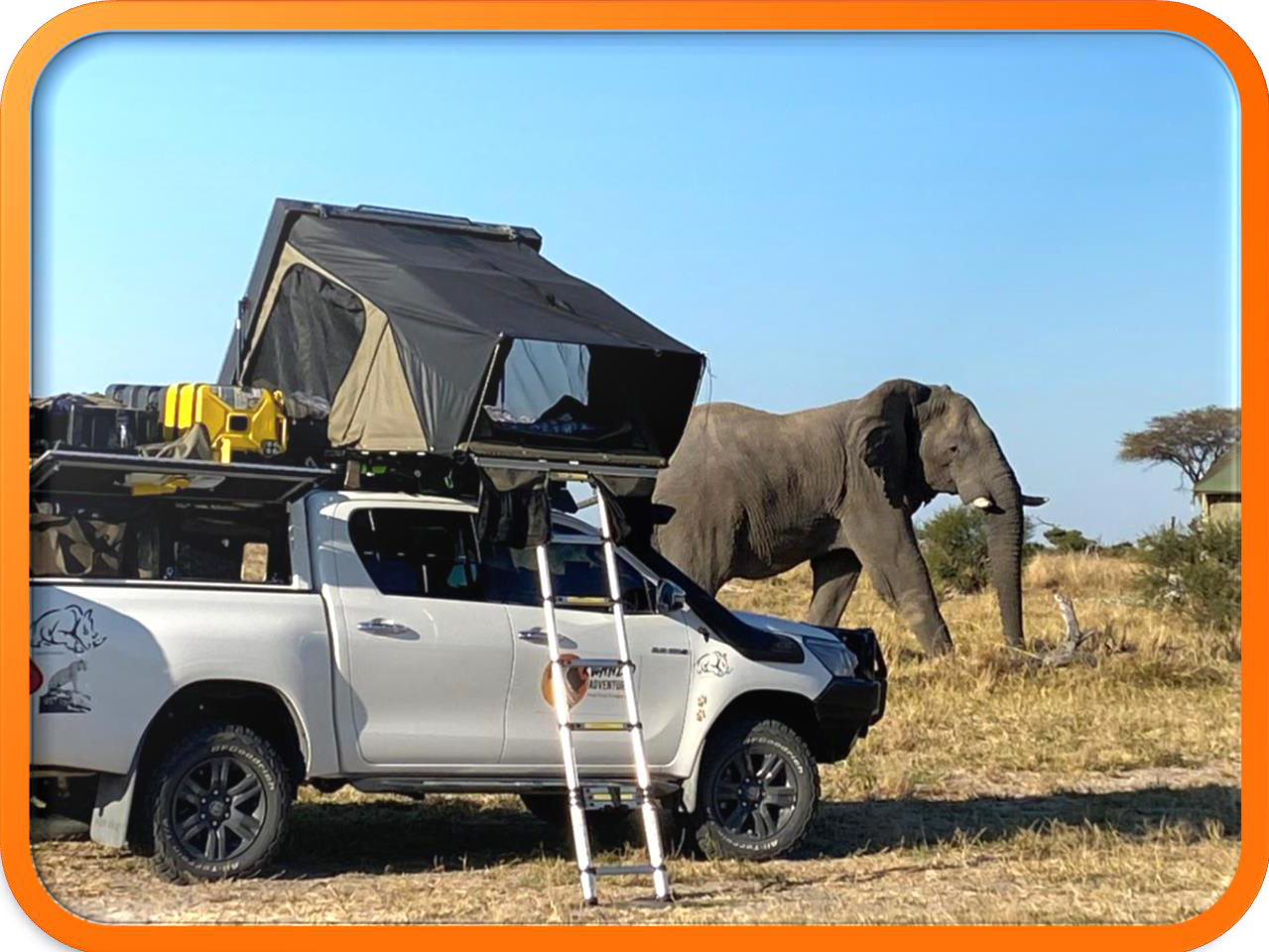 - Aluminium telescopic ladder (pre attached, to fold out tent base)
