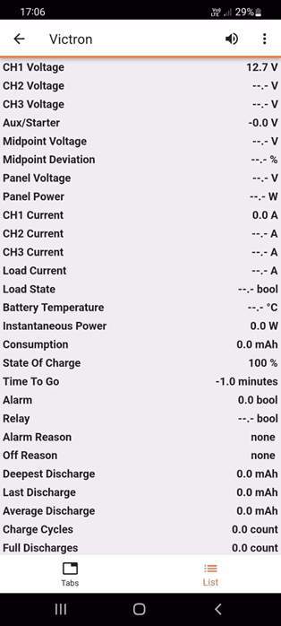 View all the parameters of your Victron devices with our nGauge Victron VE Direct Bluetooth Dongle. As an added benefit, you are able to set out of bounds alarms for each individual parameter and get an alarm when something is wrong. This can all be done without being physically connected to a Smart Victron device, or without opening the VictronConnect App. And you can have multiple Victron devices and they will be displayed simultaneously.